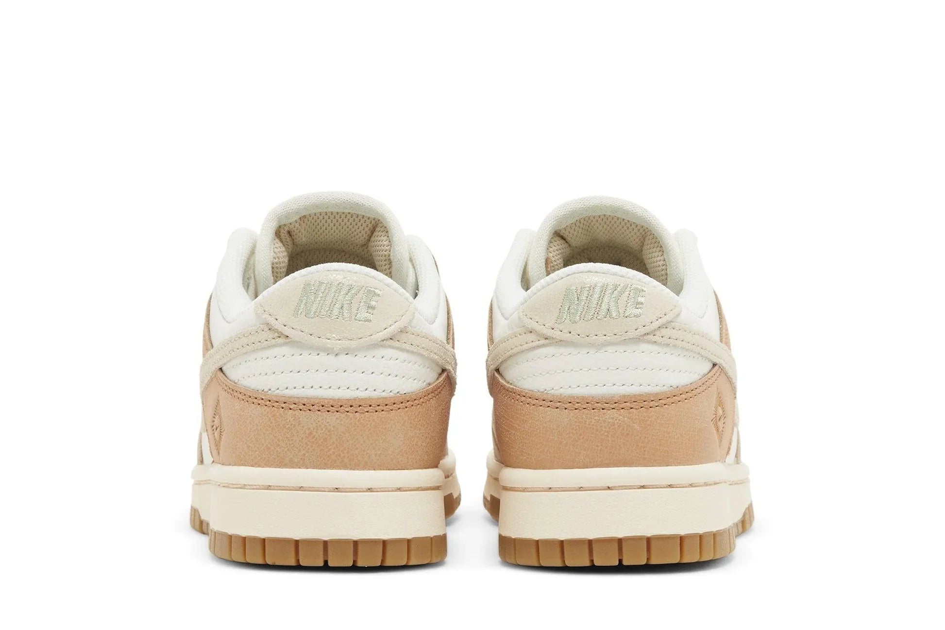 O Dunk Low SE 'Australia' apresenta uma parte superior de couro que combina uma base cor de marfim com sobreposições sutilmente rachadas em vários tons de bege rosado. Além de um Swoosh exclusivo em couro bege claro, um gráfico Swoosh estilizado adorna o calcanhar lateral. Elementos de marca adicionais incluem dubrae de renda dourada e tags de língua Nike AU. Um tom rosa pálido é aplicado à entressola, reforçada sob os pés por uma sola de borracha aderente.